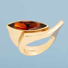 Кольцо «Шарм» — из желтого металла с крупным кристаллом диаманит, цвета шампань, алмазной огранки «маркиз», выполнено методом гальванопластики, золотое покрытие 24 карата.